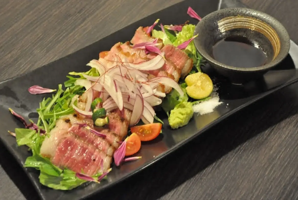 牛肩バラ肉の一部で一頭から取れる量が極わずかという希少部位であるコーネをレアステーキで提供しています。焼きすぎると硬化するため薄切りカットでさっと火を通すのが一般的ですが、当店はA5ランク牛コーネを厚切りカットしレアステーキで調理しています。絶妙な焼き加減にすることで肉の甘みと柔らかさのバランスを保つことができ、深い旨みと薄切りでは味わえない濃厚な風味を楽しめるようにしています。