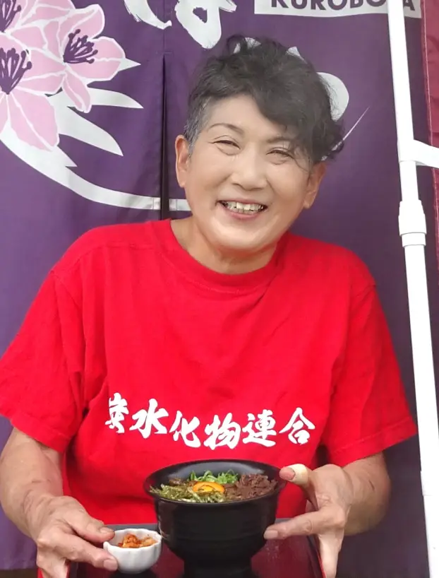 「くろぼや」が提供するジビエへそ丼は、地元食材の魅力を存分に引き出した、心とお腹を満たす一杯です。 丼の中央に輝く卵黄は、豊栄町の豊かな自然の中で1羽飼いで飼育し、餌は独自ブレンドの飼料で大切に育てられた高光養鶏場の新鮮卵を使用。割った瞬間、甘みを感じる濃厚な黄身が全体に広がり、具材とご飯をやさしく包み込みます。 ご飯には地元農家が丹精込めて育てた米を使用し、ふっくら炊き上げて甘みと香りを引き出します。 主役のジビエは、くろぼや特製のタレで味付けした豊栄町産の鹿肉で、臭みがなく柔らかな食感が特徴の「栄肉」ブランドを使用。高タンパク・低カロリーで脂身が少なく、とても食べやすいお肉です。ネギは河内町のウェルド・アグリ産で、シャキシャキとした歯切れの良さが魅力。イカの塩辛入りキムチは、高屋町の「愈(ゆ)」さんの逸品です。 福富町産エゴマ入りの食べるラー油は、ピリッとクセになる味わい。食材の持ち味を活かす調理と丁寧な盛り付けで、見た目にも食欲をそそります。 (甘みのあるブランド牛「垰下牛」のしぐれ煮を使った定番メニューもあります) 地域の恵みと職人のこだわりが詰まった、くろぼやの広島へそ丼。一口ごとに県央の温もりを感じられる、まさに“地元の幸せ丼”です。